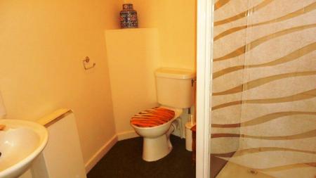 Shower Room: - 1.922m x 2.165m - Exposed beams. White wash hand basin, low level W.C. and shower cubicle.