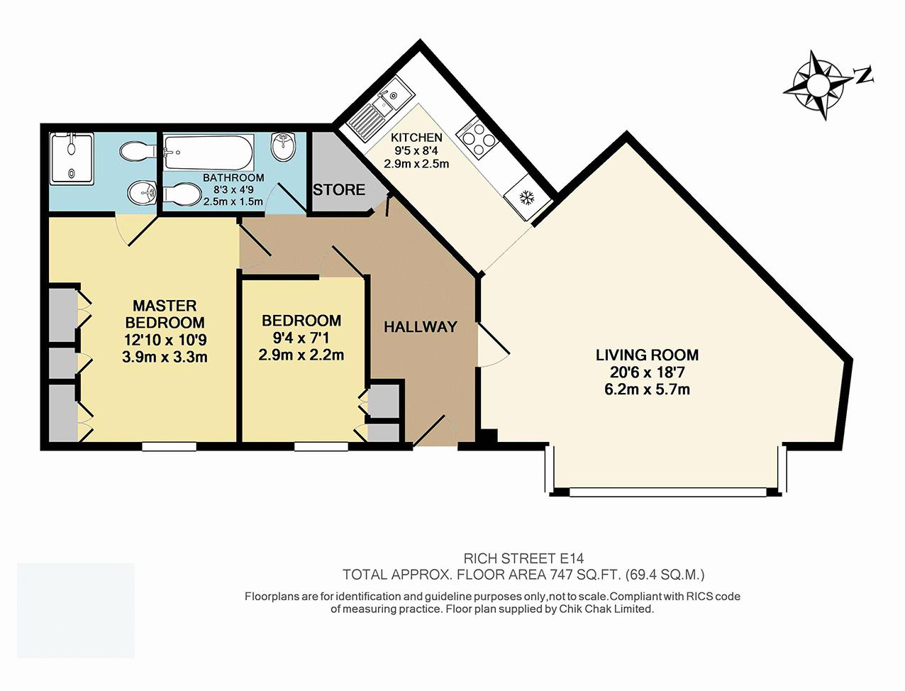 Two bedrooms apartment on the first floor, accessed by the communal entrance. The front door opens into the entrance hal...