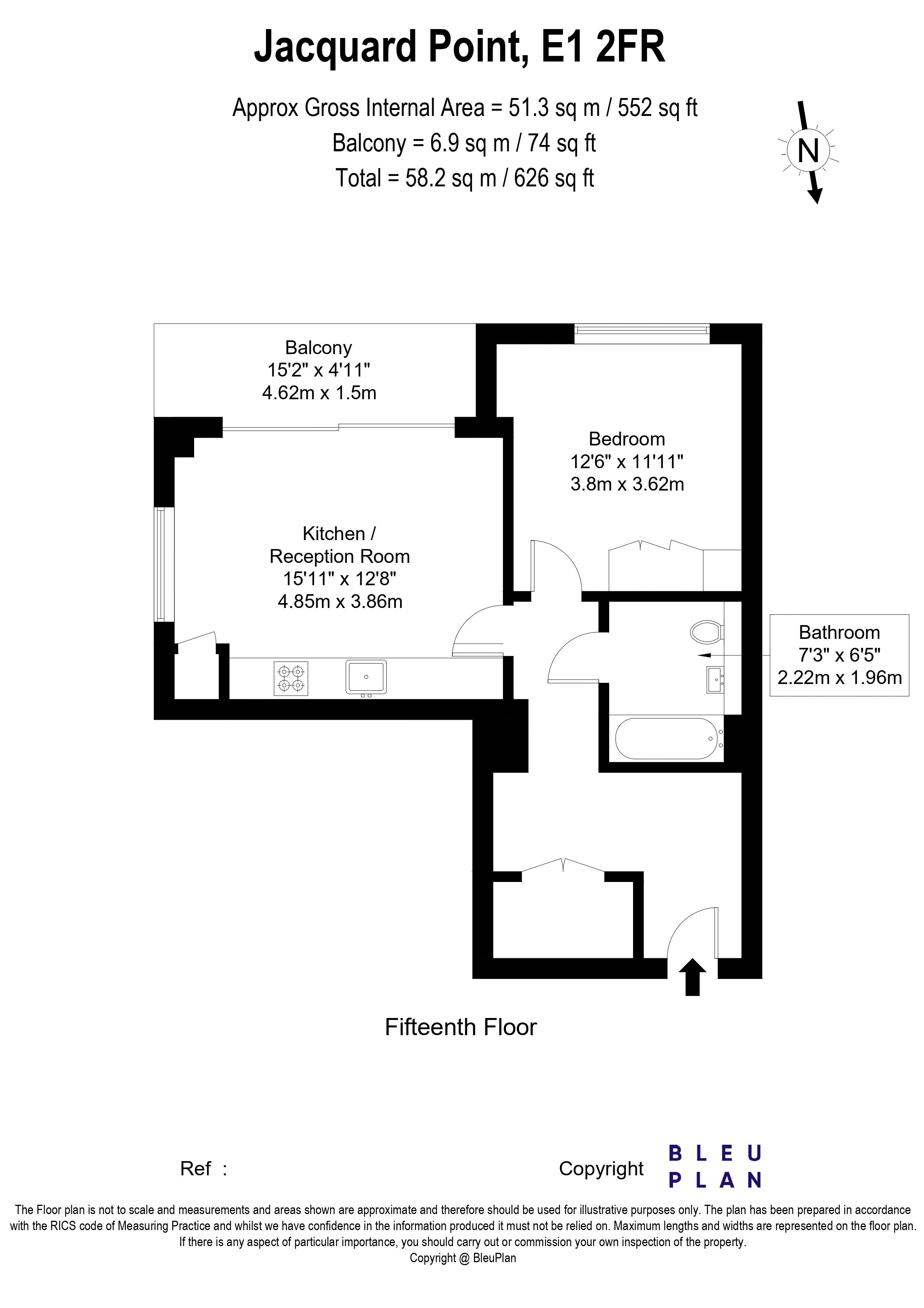 Comprising an open plan reception boasting dual aspect windows with views of The City and views of Canary Wharf from the private balcony. Fitted kitchen comes with fully integrated appliances, the double bedroom is equipped with fitted wardrobe and there is a family size bathroom with shower attachment, vanity mirror and bespoke cabinets and wash basin.