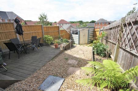 front door. The landscaped rear garden has a decked area, shingle display area, raised