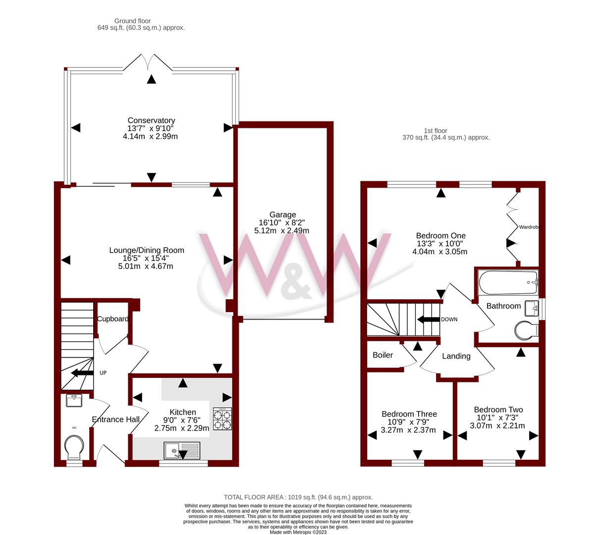 Downstairs cloakroom comprising two piece suite