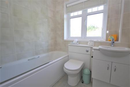 Modern Re-Fitted Family Bathroom Comprising Three Piece White Suite & Attractive Tiling