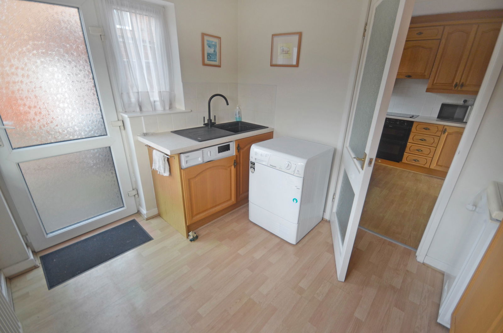 The property boasts a bright and inviting living room that seamlessly flows into the dining area. The well-equipped kitchen is complemented by a generously sized utility room, offering additional storage and functionality.
