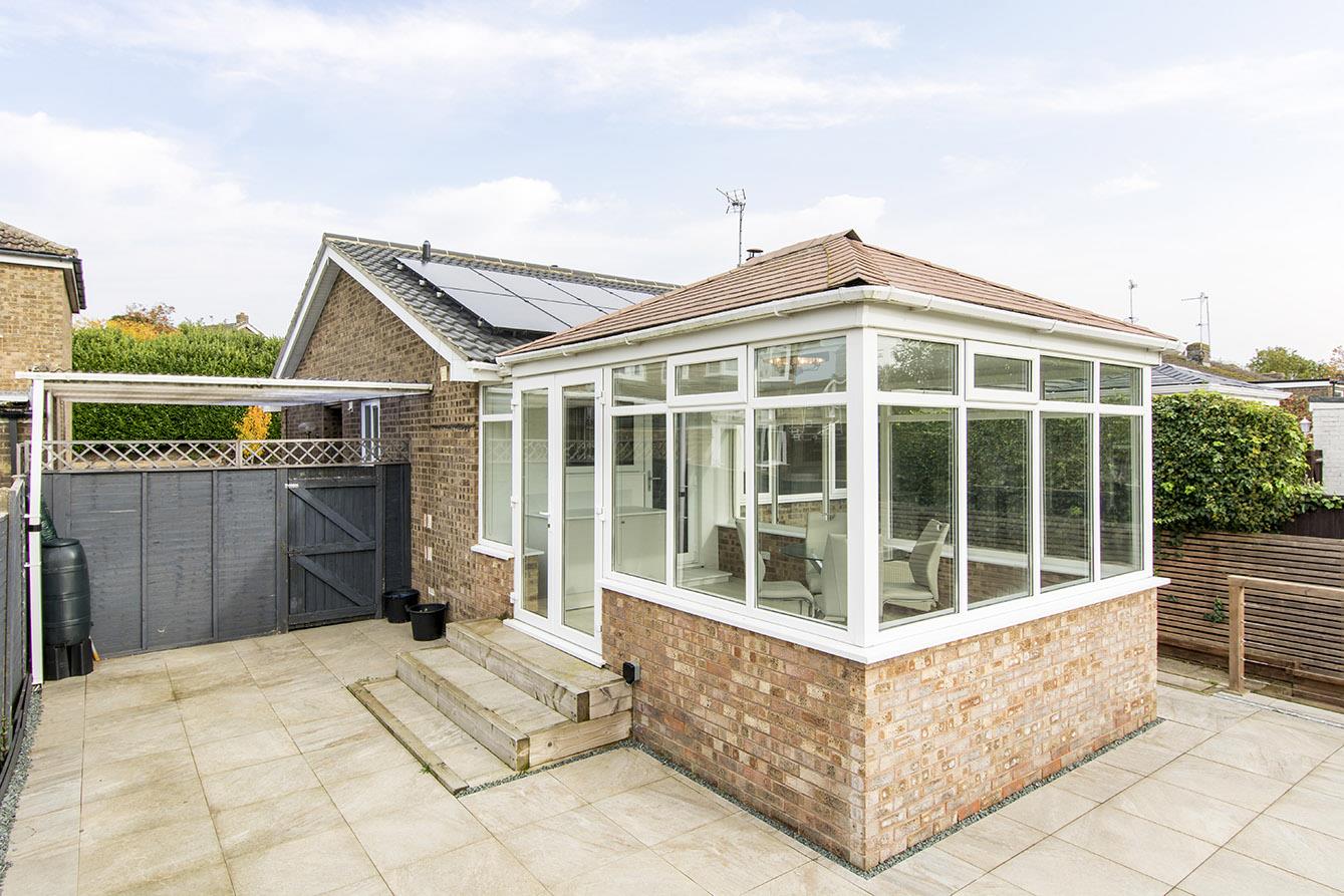 Conservatory - 4.67m x 3.20m (15'4" x 10'6") - UPVC double-glazed conservatory with French doors opening out to the rear garden. Vinyl flooring. Radiator. Fitted base unit with space and plumbing for automatic washing machine. Laminate work top and splash back. Radiator.