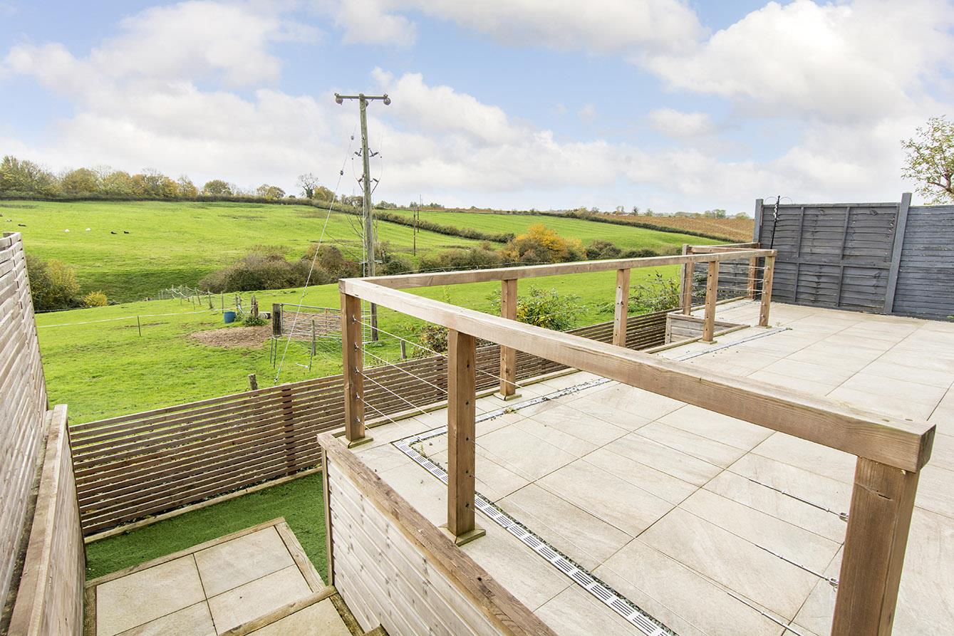 Rear Garden - Stepped and landscaped for easy maintenance. Includes a raised paved patio area to the rear and side of the property. Steps down to a small Astroturf lawn with fencing and boarding open fields. Solar panels on the rear of the property. The rear garden is South-West facing.