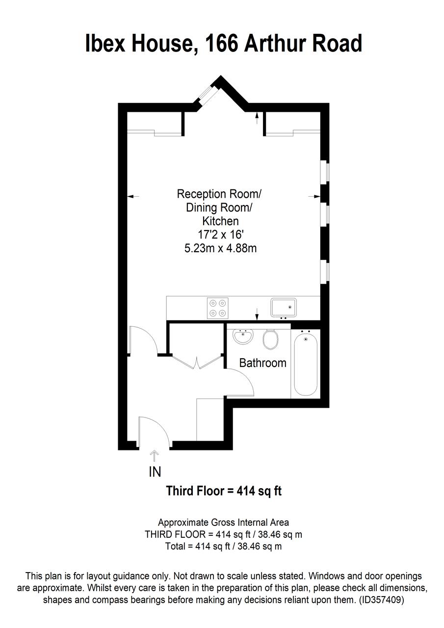 Boasting approximately 414 square feet of thoughtfully designed space, the apartment welcomes you with a bright entrance hall, flowing seamlessly into the spacious studio room. The open-plan layout features a sleek, fully-fitted kitchen with modern appliances, providing both practicality and style. The well-appointed bathroom/WC continues the modern theme, ensuring comfort and convenience.