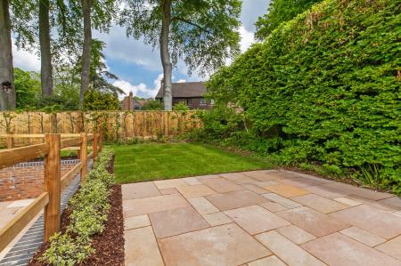 Outside is an attractive landscaped garden; a lower patio area is laid in Indian Sandstone and steps lead to a large L shaped lawn garden with a second patio and garden shed.