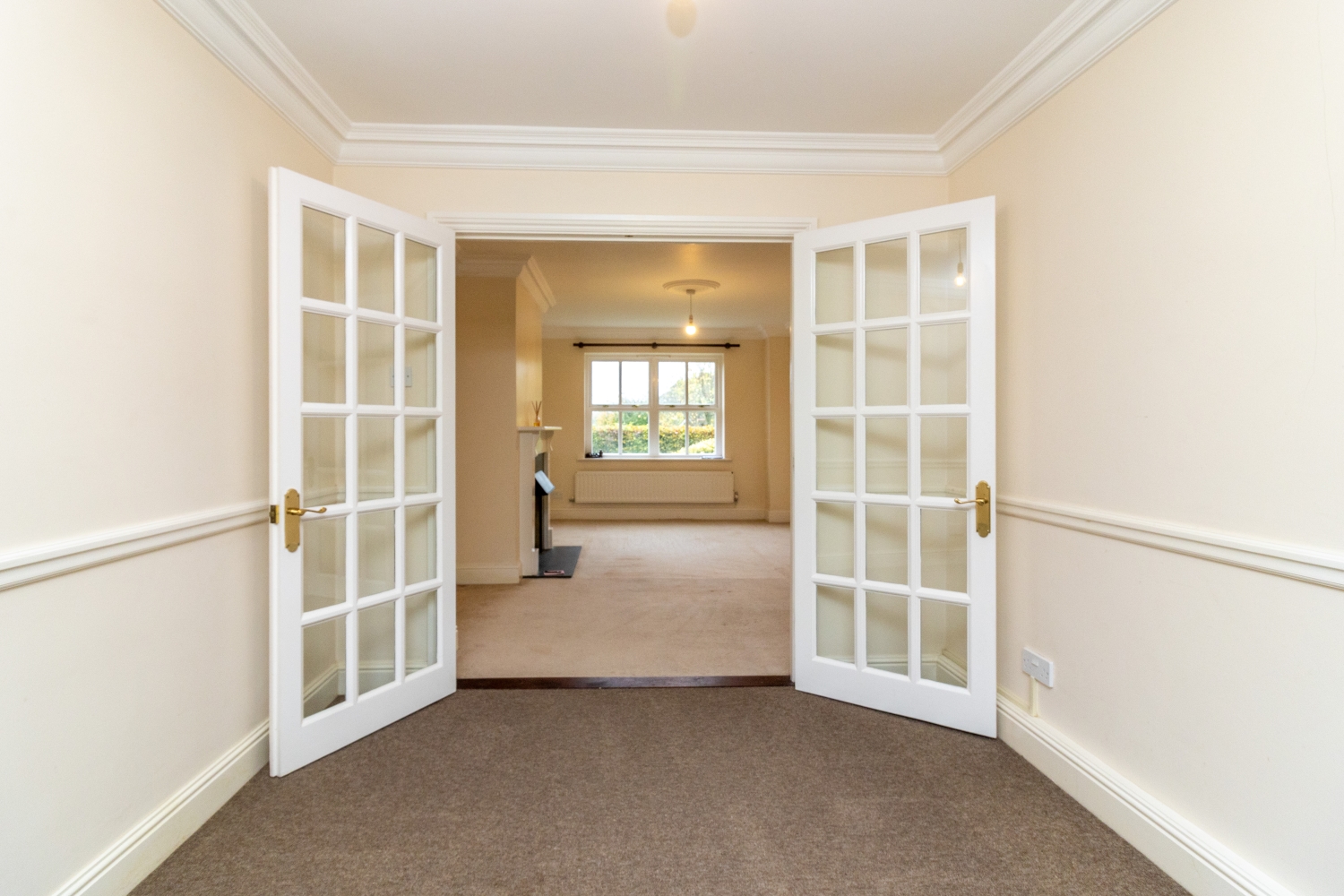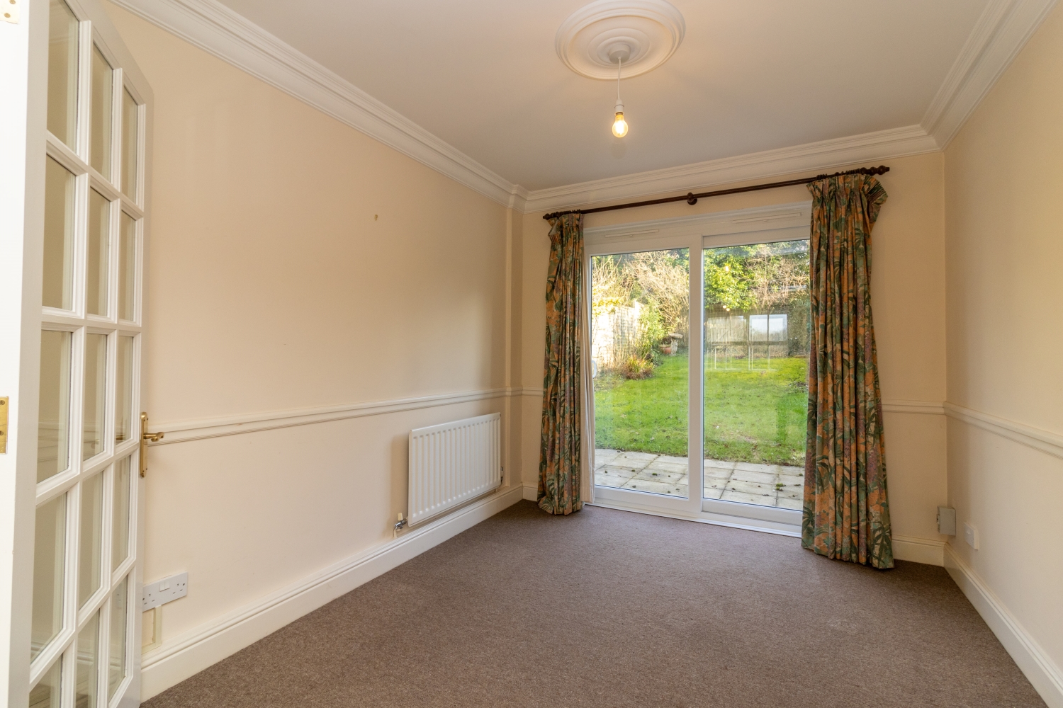 From the entrance and hallway, there is a dual aspect sitting / dining room. This spacious, naturally well lit room can be divided by double doors if needed, and has the additional advantage of patio doors leading to the garden. The Kitchen, which features a range of white units, has a door to the garden. Cloakroom and under stairs storage cupboard.