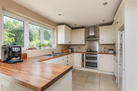 The entrance hall, with downstairs cloakroom to the left leads through to a most welcoming sitting room on the right - an excellent space with a wood burner at the centre of the room. Through the sitting room is a study with doors out to the garden which would lend itself as an additional reception/ play room. A large open plan, L-shaped kitchen/ diner provides substantial space for all the family with an outlook and direct access to the rear patio and garden. The smart kitchen hosts a range of fitted appliances and ample cupboard space.