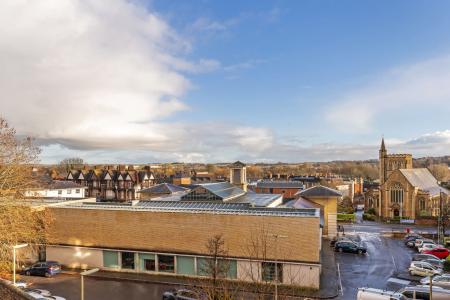 Generously sized modern two bedroom apartment with an allocated parking space, set in a secure gated development close to the High Street with views across to St. Peters Church and beyond. Neutrally decorated throughout with new carpets just fitted. Well sized bedrooms; the principal with an en-suite bathroom and the second double bedroom serviced by a shower room. The spacious sitting room benefits from sliding doors out to a balcony with wonderful views across town and in the open plan kitchen the appliances include a hob, oven, fridge freezer and dishwasher. There is an allocated secure parking space for one car.