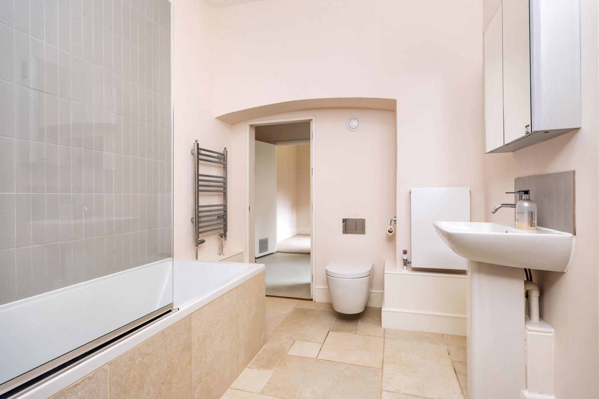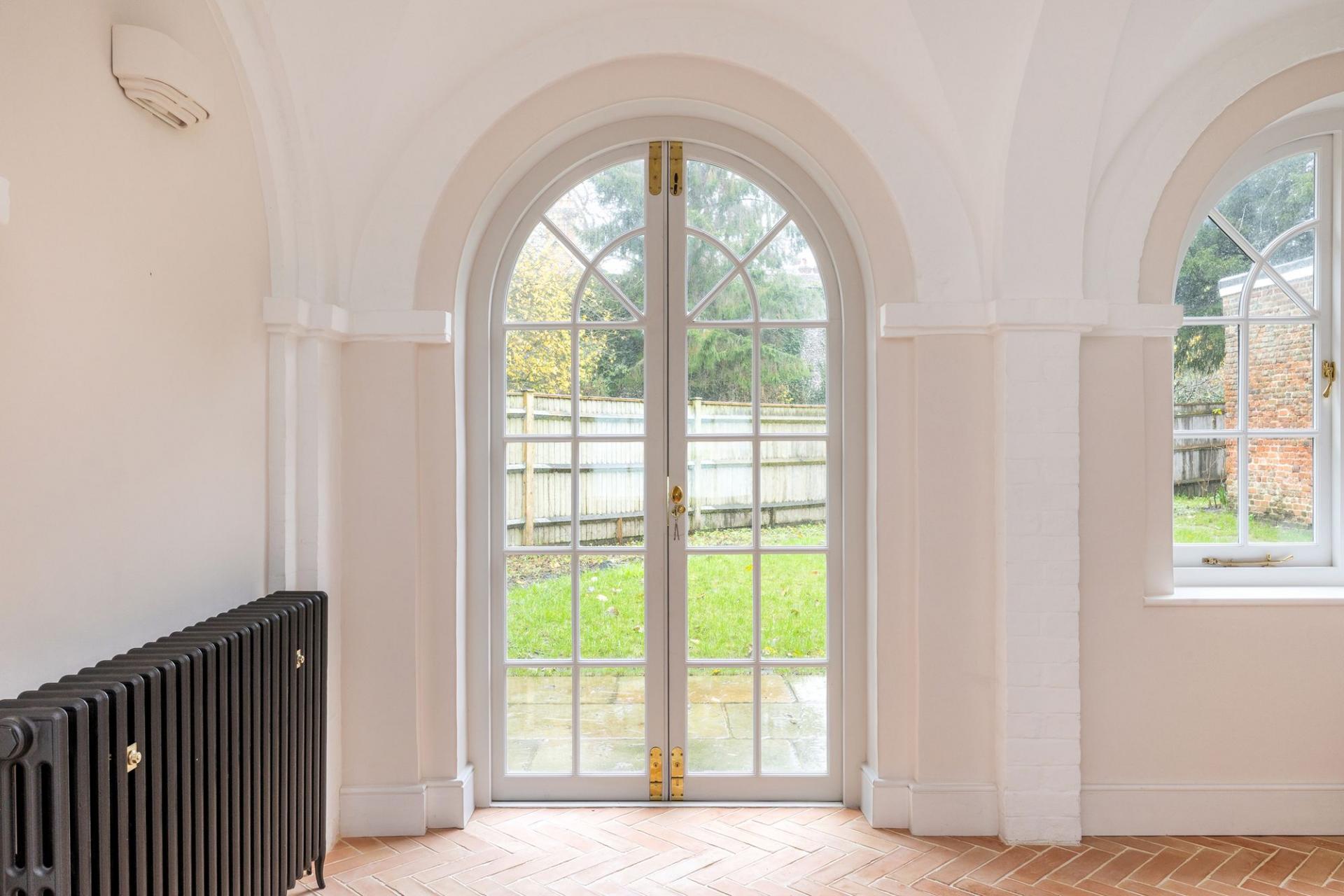 The apartment is accessed via a private partially walled garden towards the end of Dome Alley, via The Close, situated behind the cathedral. Having undergone substantial refurbishment within recent years the apartment provides premium accommodation, tastefully finished to compliment the character and history of its surroundings. Upon entrance to the property, you arrive to a charming hallway with wall panelling, parquet flooring and cast-iron radiators. On the left lies the principal bedroom; carpeted and a comfortable double room with central diamond paned window. A smart dual access bathroom suite is located off the hallway and provides access through to a utility/storeroom where the boiler and water tank are located. The bathroom is neatly tiled and features a modern bath with shower over. Further on, an additional room is found; a perfect study or occasional guest room. The parquet flooring continues from the hallway through to the sitting room; a beautiful room elevated by high ceilings, feature fireplace, large cast iron radiators and a westerly aspect out to the private garden. The kitchen/breakfast room is perhaps the showpiece; a sleek fitted kitchen with integral appliances sits underneath vaulted arched ceilings. Herringbone brick tiled flooring and arched windows and doors lead out to the gardens which compliment the space.