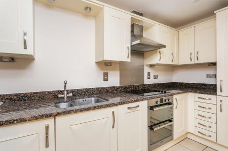 The inner hallway with a cloakroom leads to a spacious sitting/dining room, fitted kitchen with ceramic shaker style units, stylish granite tops above, appliances to include integrated fridge/freezer, stainless steel double oven, hob, dishwasher and washer/dryer. There is a large double bedroom, dressing area with wardrobes and a bathroom with bath and separate shower cubicle. Outside there is one allocated parking space and bike storage.