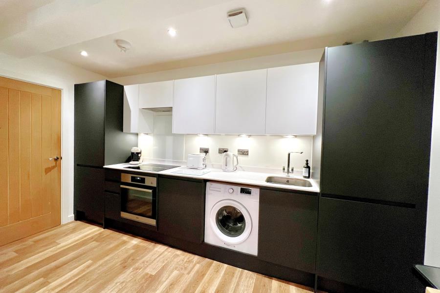 A modern one-bedroom executive apartment situated in Woking Town Centre with driveway parking. Perfect for commuting, Trinity Place is also just a short walk to Woking station, providing fast non-stop journeys direct to London Waterloo (Zone 1, fast train within 24 minutes) whilst being close to excellent road links including the M25 providing easy access to Heathrow airport.