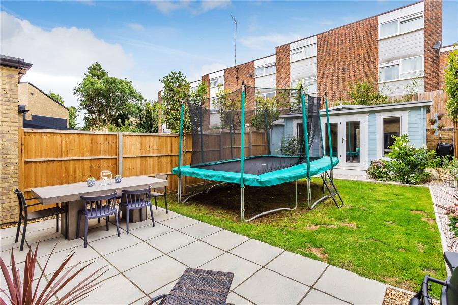 ***BOASTING UNIQUE VIEWS OVER WOKING PARK***A really impressive highly contemporary semi-detached townhouse built in 2018 on the fringe of Woking Park with fabulous views to the fore, within walking distance to the town centre and station. Occupying an exclusive cul de sac the property offers superbly presented three storey accommodation. The ground floor has a spacious hallway, cloakroom, study and an open plan kitchen/dining/family room. The kitchen is custom built with composite work tops and upstands with integrated appliances. This floor is tiled throughout and has bi-fold doors to the garden. The first floor has a front aspect living room, bathroom and bedroom, whilst the top floor has two further bedrooms, including the impressive main bedroom with en-suite shower room and dressing room. It also features access to a private terrace with superb viewers towards the park. The specification is certainly impressive throughout and includes gas heating (underfloor to ground floor and radiators to the first floor). There are high performance UPVC windows and doors, modern veneered internal doors and luxuriously appointed bath/shower rooms. Outside, is a good-sized rear garden which is mainly lawn with a paved terrace and attractive summerhouse to the rear. The property also has allocated parking.