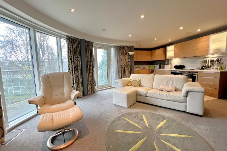 A luxury two bedroom, second floor apartment located in a popular development in Woking town centre. The accommodation comprises a stunning open plan kitchen/living/dining room with floor to ceiling windows and access to a large balcony, master bedroom with built-in wardrobes and en-suite four piece bathroom, further double bedroom with built in wardrobe and a family shower room. The property also benefits from a walk-in airing cupboard and a large storage cupboard, underfloor heating, underground parking and lift access.