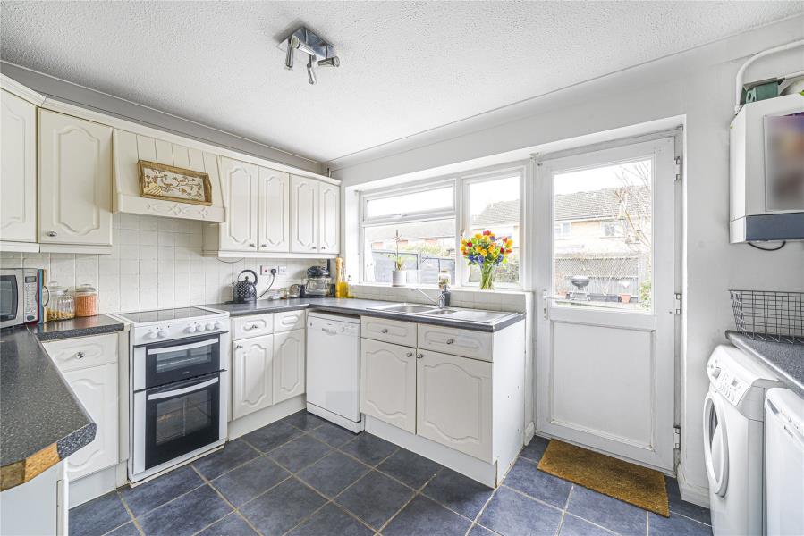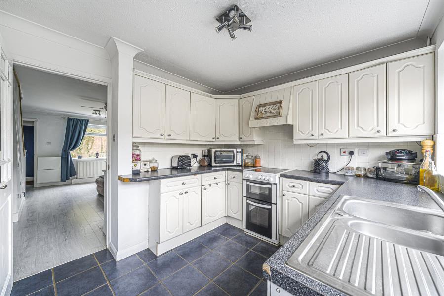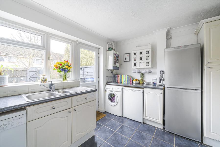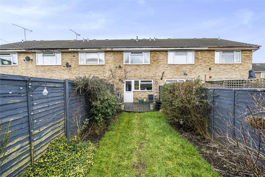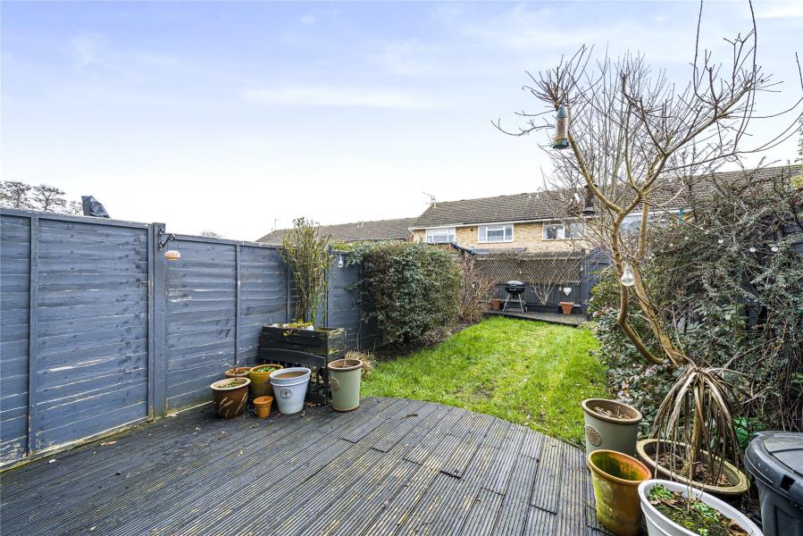 A well-presented, light and airy two-bedroom mid-terraced Ashwood style home, tucked away in a quiet cul-de-sac in the heart of Goldsworth Park. The property features a modern fitted kitchen, a spacious living/dining room, two double bedrooms, and a contemporary bathroom. Additional benefits include UPVC double glazing, gas central heating, an enclosed rear garden, a garage in a nearby block, and communal parking.