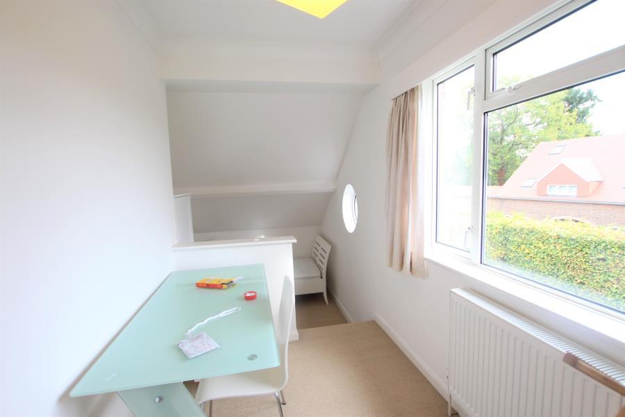 Detached family house in a sought after road in Horsell, offering four double bedrooms, two bathrooms, spacious living room with original Parquet flooring, modern new kitchen with electric hob, dishwasher and granite work surfaces, utility room, large private garden, huge garage and off road parking for at least two cars. Since the photos have been taken the bathrooms have been renovated and new carpets have been laid upstairs.
