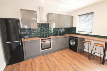 This modern luxury apartment boasts a spacious double bedroom, a sleek bathroom, and a bright open-plan living, dining,...
