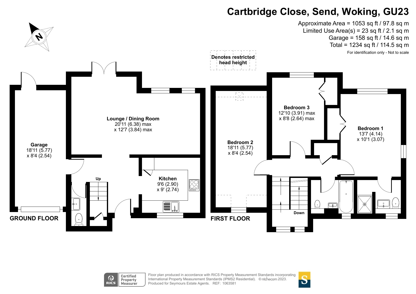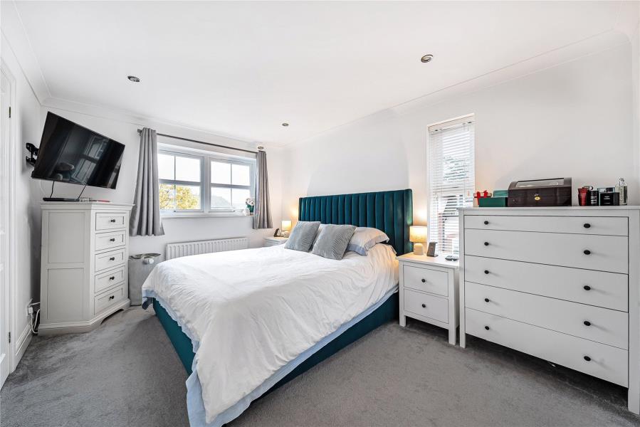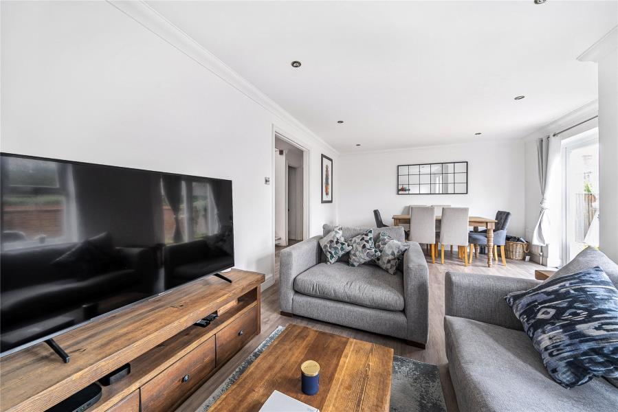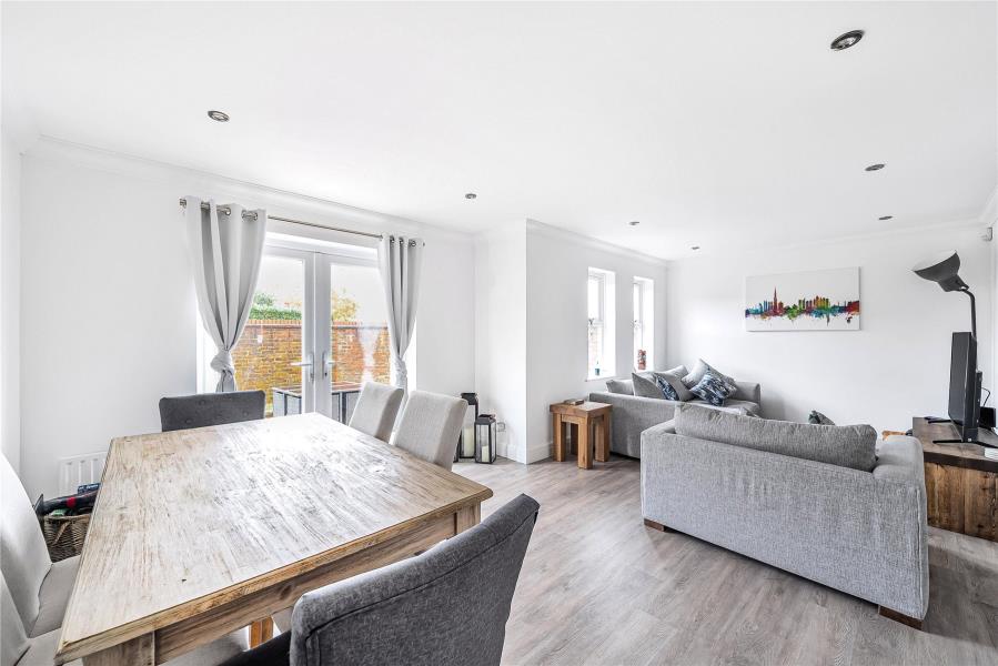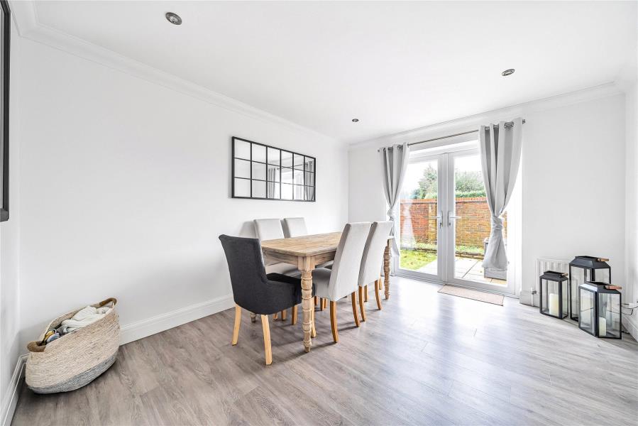 The front door opens into a light and airy entrance hall that gives access to all the principal living areas, a WC and the garage. Wood effect flooring continues throughout the ground floor. The kitchen is fitted with a generous range of shaker-style cupboards with plenty of worktop space and Integrated appliances that include a dishwasher, oven and a ceramic hob with an overhead extractor. The sitting/dining room is spacious and will easily accommodate both a lounge suite alongside a family-sized table and chairs in the dining area. A set of French doors open to give access to the rear garden. Upstairs, the master bedroom enjoys double aspect windows a fully tiled ensuite shower room and built-in wardrobes. There is additional storage on the landing opposite the luxurious bathroom which is also fully tiled, and fitted with a modern white suite. The remaining two bedrooms are generous in size with one benefitting from built-in wardrobes. The front of the property is block-paved and provides parking for two vehicles, a gate gives access to the rear walled garden that has a low raised flowerbed border enveloping a lawn and a patio area. A pathway runs across the length of the property also giving rear access to the garage. The property is located in Send, close to local shops and other amenities. The recreational ground and Wey canal are also a short distance away, perfect for keen walkers. Road communications are excellent and there is the further benefit of close-by bus stops with regular services to Woking and Guildford. The neighbouring village of Ripley, with its more comprehensive array of shopping facilities and country pubs is a short distance, while Woking and Guildford towns are also within easy reach. The area has excellent road and rail connections with the A3 and Junction 10 of the M25 being within close proximity. Woking Station offers regular service to London Waterloo with trains approximately every 7 minutes and a journey time of around 22 minutes. Alternative services are provided from West Clandon with trains to London Waterloo arriving within one hour.