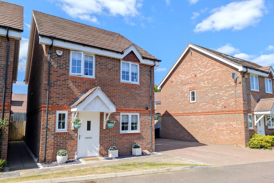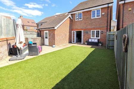 This excellently presented, detached four-bedroom home is waiting to be your next home. It enjoys a desirable position on a quieter through road within the gated section of the Brookwood Farm Development, set opposite a wild flower natural brook and just steps away from expansive open country parkland perfect for leisurely walks or invigorating runs near the Basingstoke canal. Upstairs, the home offers four beautifully appointed bedrooms, each filled with natural light and designed to provide a calm, restful retreat, two of which benefit from integrated built in wardrobes. The master bedroom boasts a stylish en-suite shower room, seamless fitted storage creating a private sanctuary with an inviting and luxurious touch. The sleek, fully tiled, contemporary family bathroom serves the remaining rooms, ideal for both busy mornings and relaxing evenings. The ground floor features a stylish front-aspect kitchen/breakfast room, beautifully appointed with a double stainless steel sink and a pretty silver sparkle granite worktop. Equipped with premium Bosch appliances, including a sleek double oven and gas hob, perfect for everyday meals or entertaining. Integrated appliances such as a dishwasher and a washer/dryer offer both convenience and a streamlined aesthetic. In addition the fitted water softener ensures silky soft showers and crisp clean cups of team- making this a modern kitchen that is as functional as it is stylish. Downstairs also benefits from the convenience of a well placed practical cloakroom near the main living areas ideal for guests and a busy household alike. To the rear of the detached property, there is a generously sized lounge and dining area that offers a welcoming space for relaxing or entertaining, bathed in natural afternoon light from the sleek double doors that open directly onto the garden. Outside, the beautifully designed garden features a low-maintenance plush, green artificial lawn perfect for year round playing and a smart patio seating area ideal for al fresco dining or unwinding on sunny afternoons. The property is further enhanced by a private garage which is large enough for to be utilised for both storage and storing a family car. Directly beside the house there is parking for a further two cars providing both security and ease. The Brookwood farm development in Knaphill is renowned for its strong community feel and charming village atmosphere. Residents enjoy a welcoming environment where neighbours connect easily, creating a friendly and inclusive neighbourhood. This thoughtfully designed development combines the tranquility of open natural space living with a genuine sense of belonging, making it the perfect place to call home. Knaphill village is just a short walk away and offers a community hub, featuring a variety of everyday amenities including a newly opened nursery, a supermarket, award-winning hairdressers and popular beauticians. The village also boasts several yummy eateries and an upcoming café culture with a selection of inviting coffee shops. Nearby there are many well-regarded and certified primary and lower schools- making it all a highly desirable location for families and professionals alike.