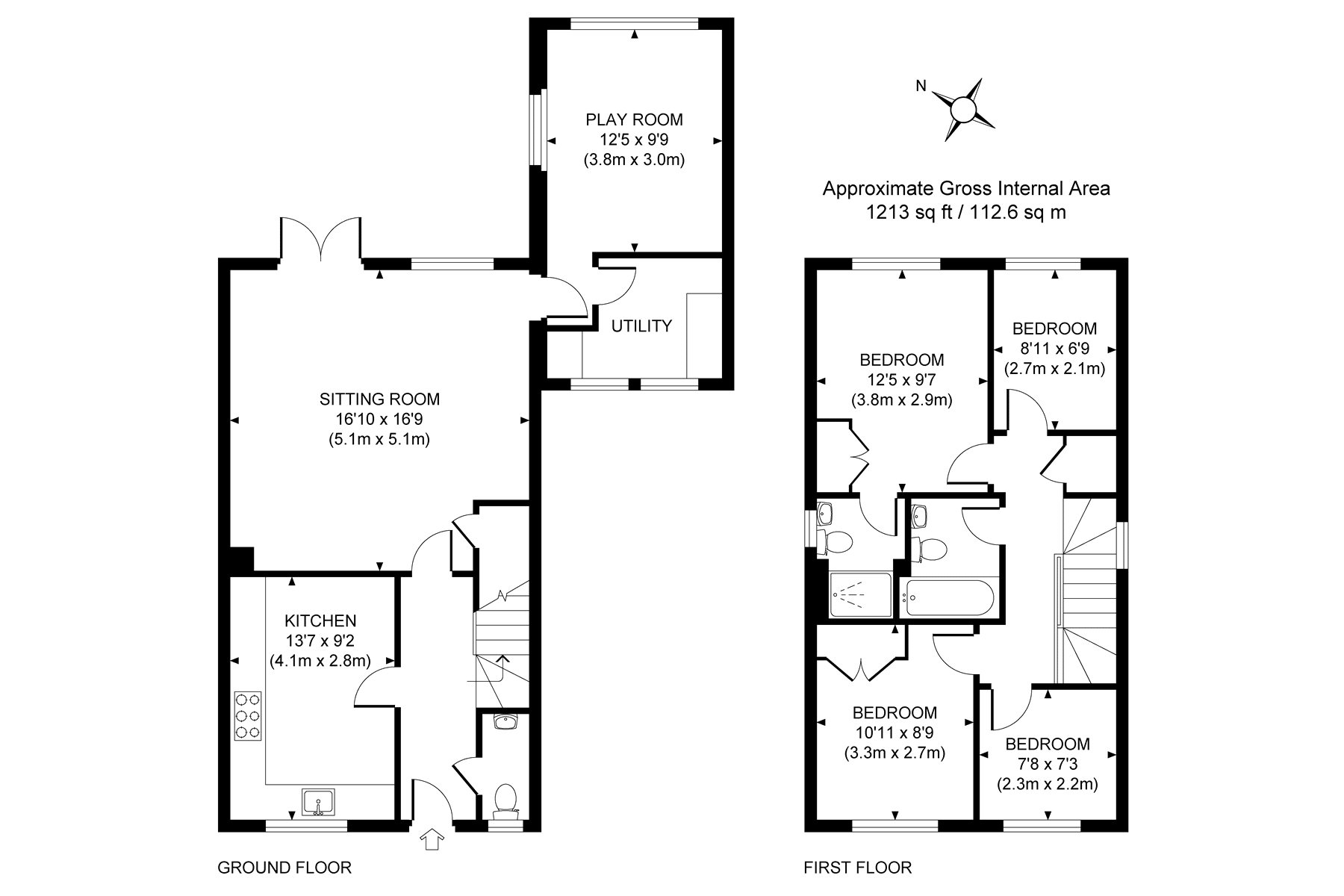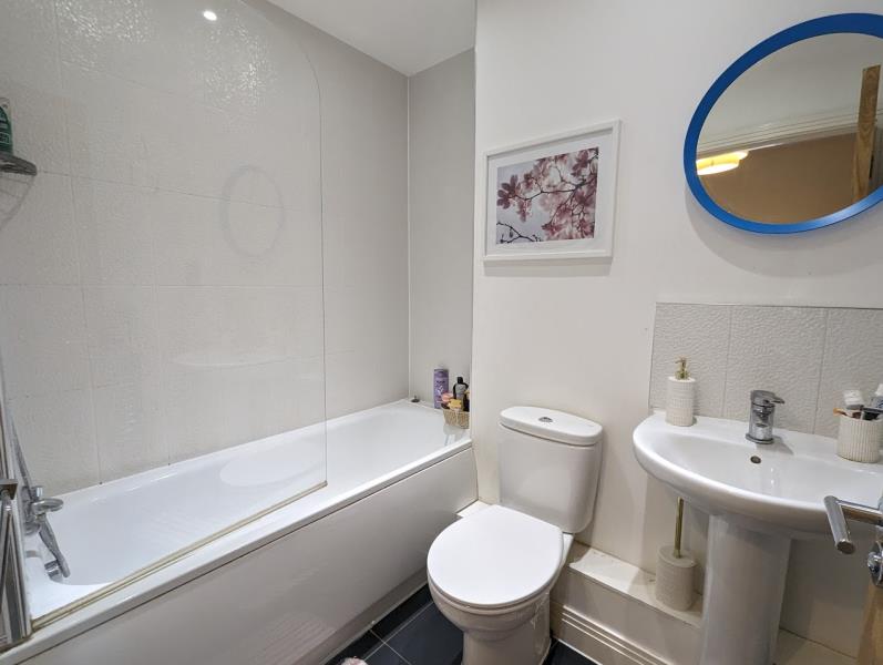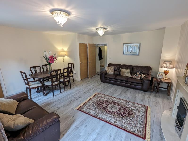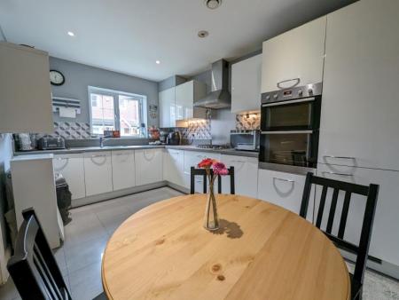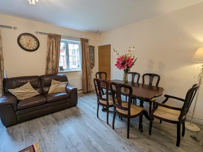 On the ground floor, the modern kitchen/breakfast room is fitted with white contemporary eye and base level units, a double oven, a four-ring gas hob, and integrated appliances. The spacious living/dining room features double doors that open to a private rear garden. A garage conversion has created a second reception room, currently used as a family room and utility area.