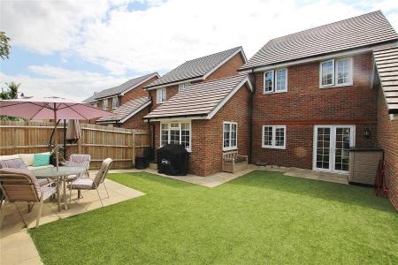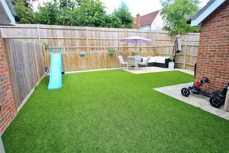 The rear garden is easy to maintain with artificial lawn and a patio seating area. The front of the property offers a driveway with off-street parking. Local schools are within easy reach, and Knaphill Village offers a wide range of amenities.