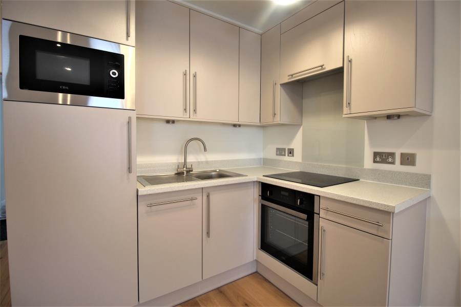 This Modern studio apartment is located in a prime location in Woking Town Centre, a very short walk from the mainline station. The finish is of high quality, with a fully equipped kitchen including dishwasher and fitted microwave , a bedroom area with fitted wardrobes and a luxury shower room. The apartment is situated on the 3rd floor of this exciting new development, which has the option of Super-Fast Virgin Media Fibre Broadband. Note - Internal photographs are of the show home apartment.