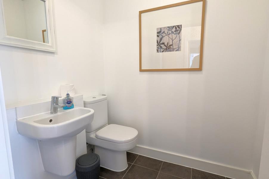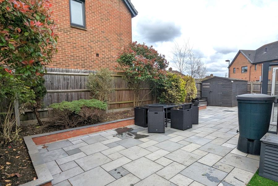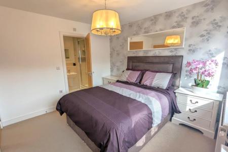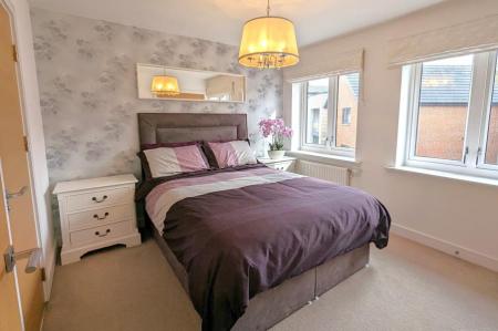 This four-bedroom detached family home is part of the new Kingsmoor Park development. It's well-maintained, highly efficent (EPC Band: B) and offers modern living spaces. The ground floor features a spacious cloakroom and an open-plan kitchen/breakfast room. The main living room has French doors opening to the rear garden. Upstairs, there are four bedrooms, with the main bedroom having an en-suite shower room. The property has UPVC double-glazed windows and gas-fired heating. Outside, the property features a landscaped low-maintenance gardens, gated carport and a laarge garden shed.