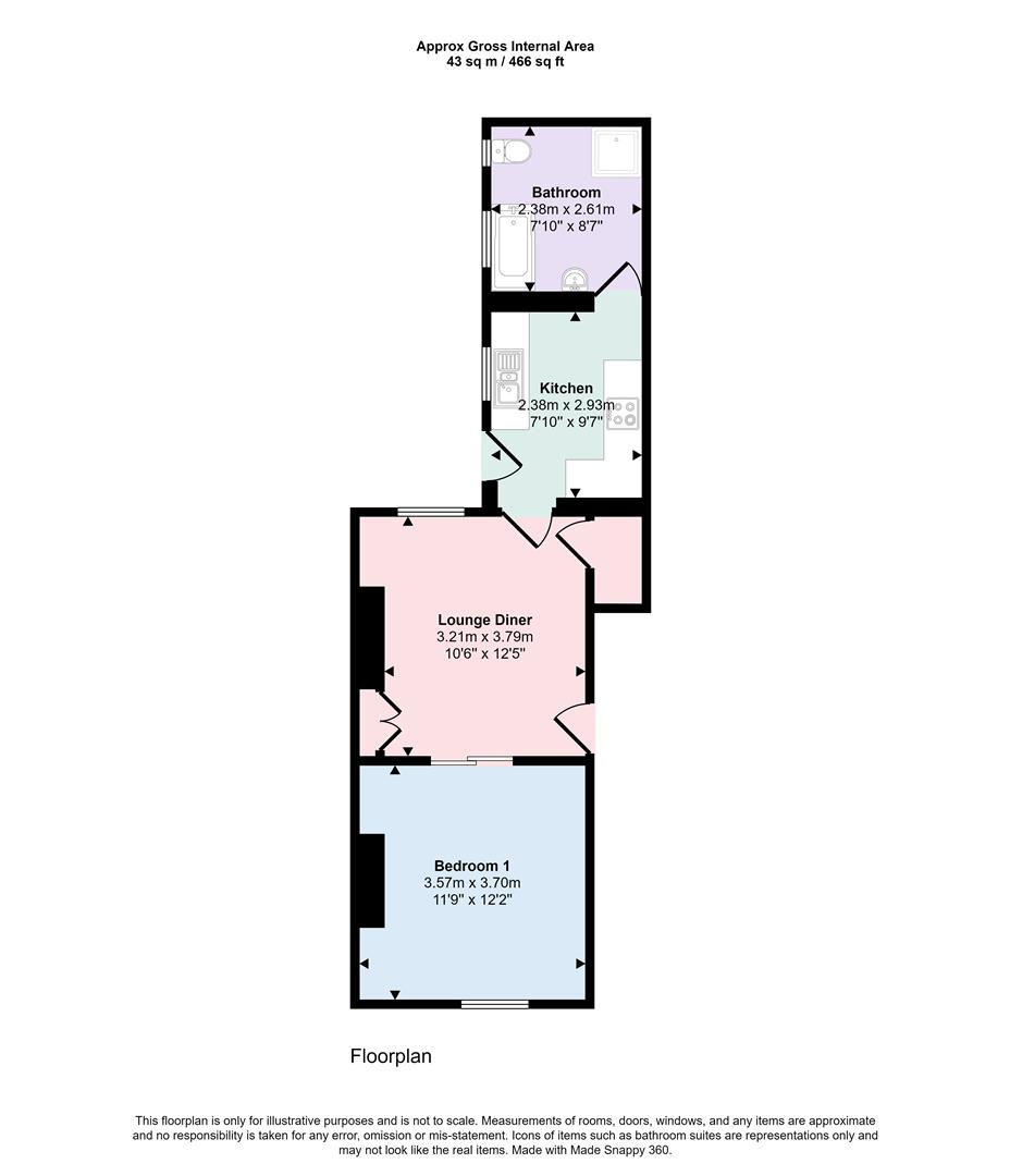 A one-bedroom, ground-floor flat, accessed via a shared entrance hallway, which has doors to both flat A & flat B. There is a spacious lounge, a kitchen with built-in appliances including an electric oven, a gas hob, a double bedroom and a shower room, which has been fitted with a White 3pc suite. There is the opportunity for on-street parking to the front of the property.
