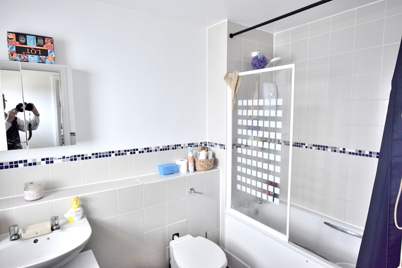 BATHROOM - Tiled flooring, Bath & electric shower, obscured double glazed window to rear aspect. 3 piece suite - back to wall toilet, heated towel rail.