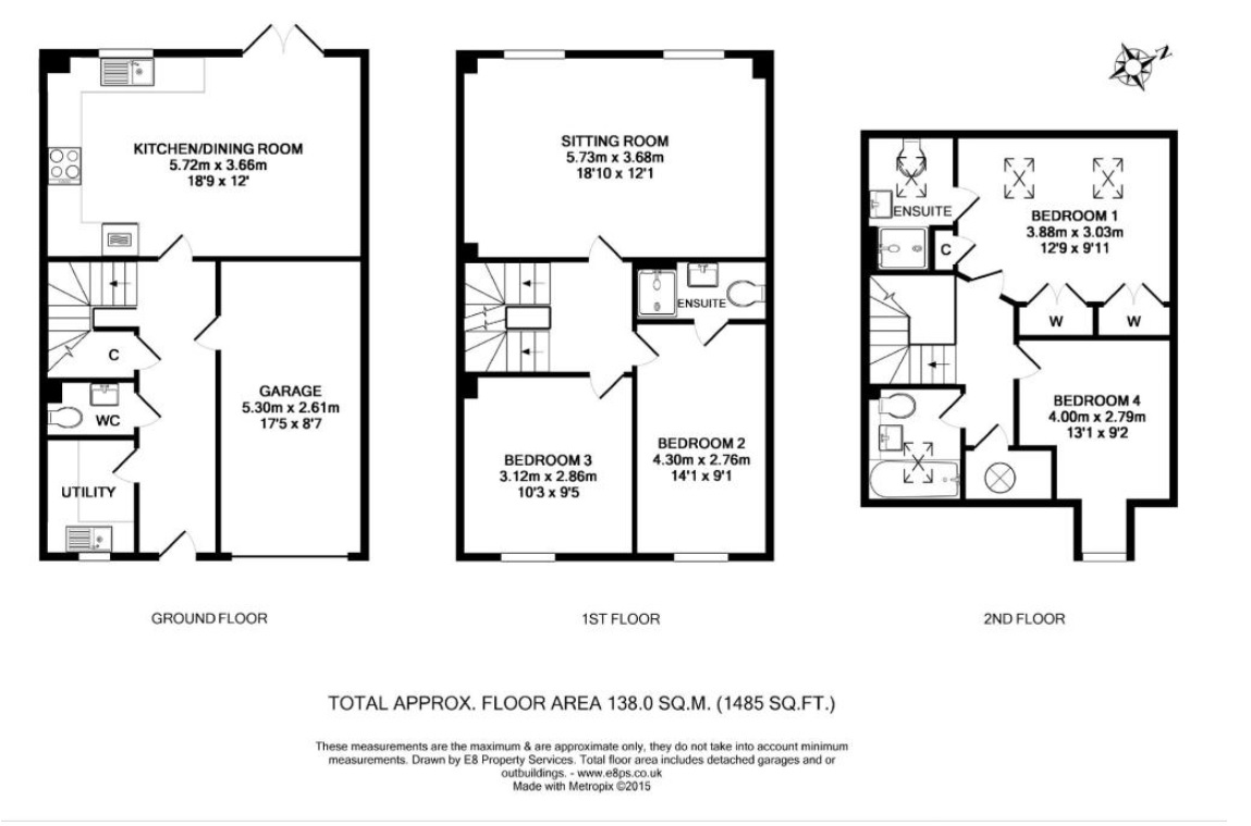 FULL DESCRIPTION The ground floor offers a large open plan fully fitted kitchen with dining area, separate utility room and cloakroom as well as internal access to the garage. On the first floor there is a reception room, a double bedroom with en suite bathroom and second bedroom. The second floor comprises a primary bedroom with en suite, further double bedroom and family bathroom. Pretty garden with shed to the rear. Garage and off street parking. Available unfurnished from November for a minimum 6 month tenancy. EPC rating C.