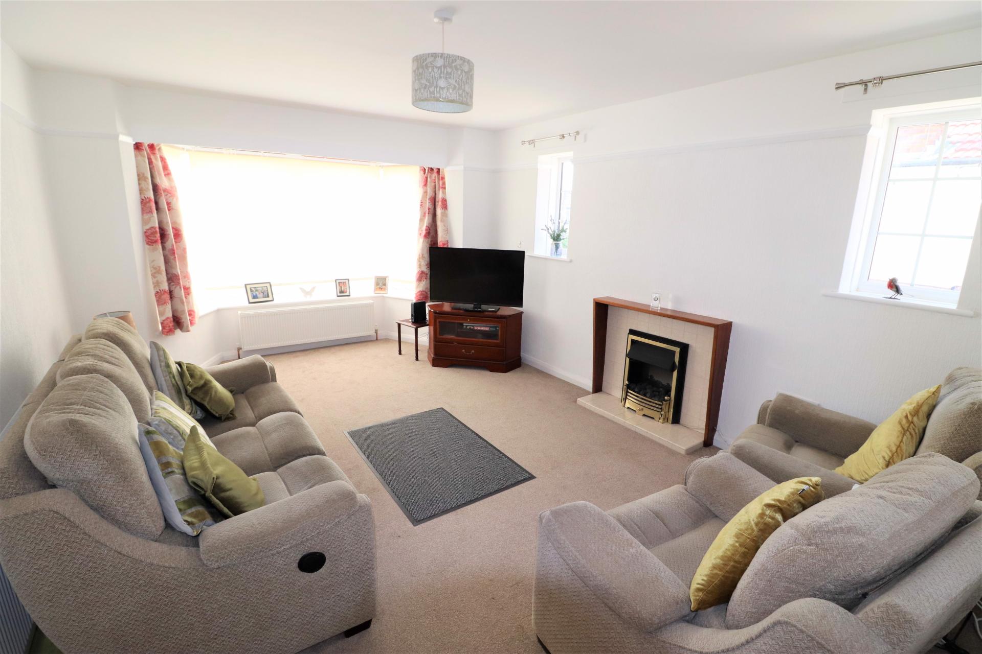 Double glazed bay window to South aspect, two radiators, 2 further double glazed windows to West aspect, picture rail, newly laid carpet, electric coal effect fireplace, TV point.
