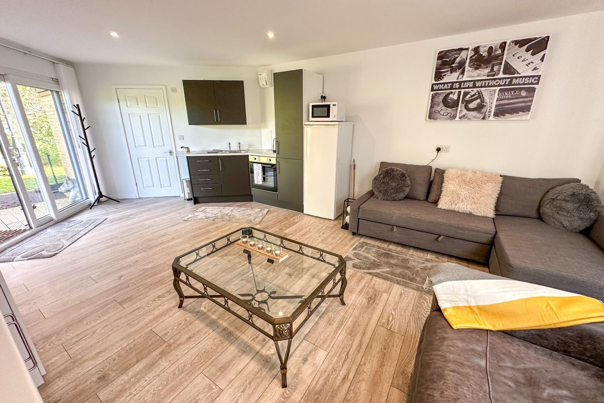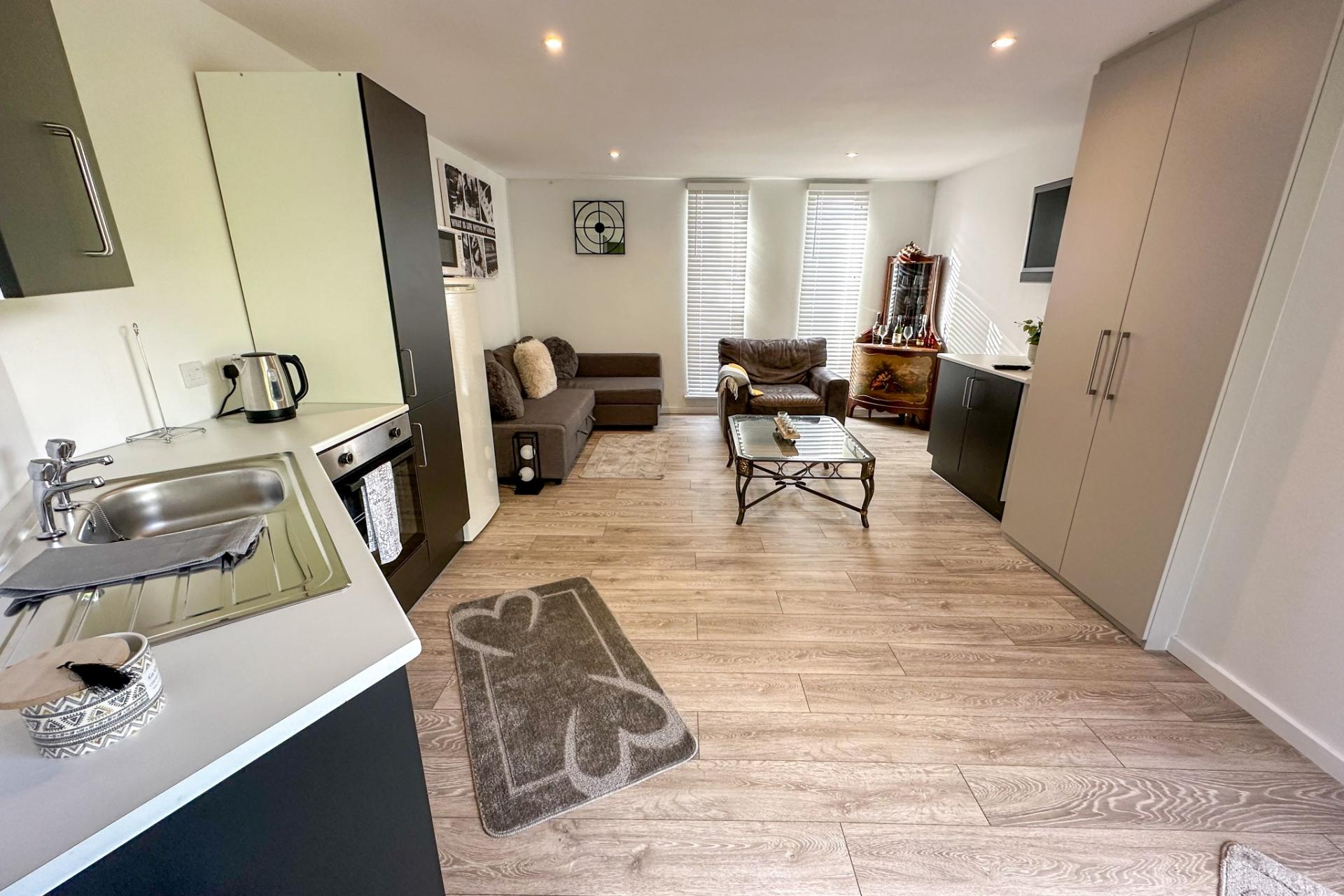 - Open plan living/kitchen/bedroom
