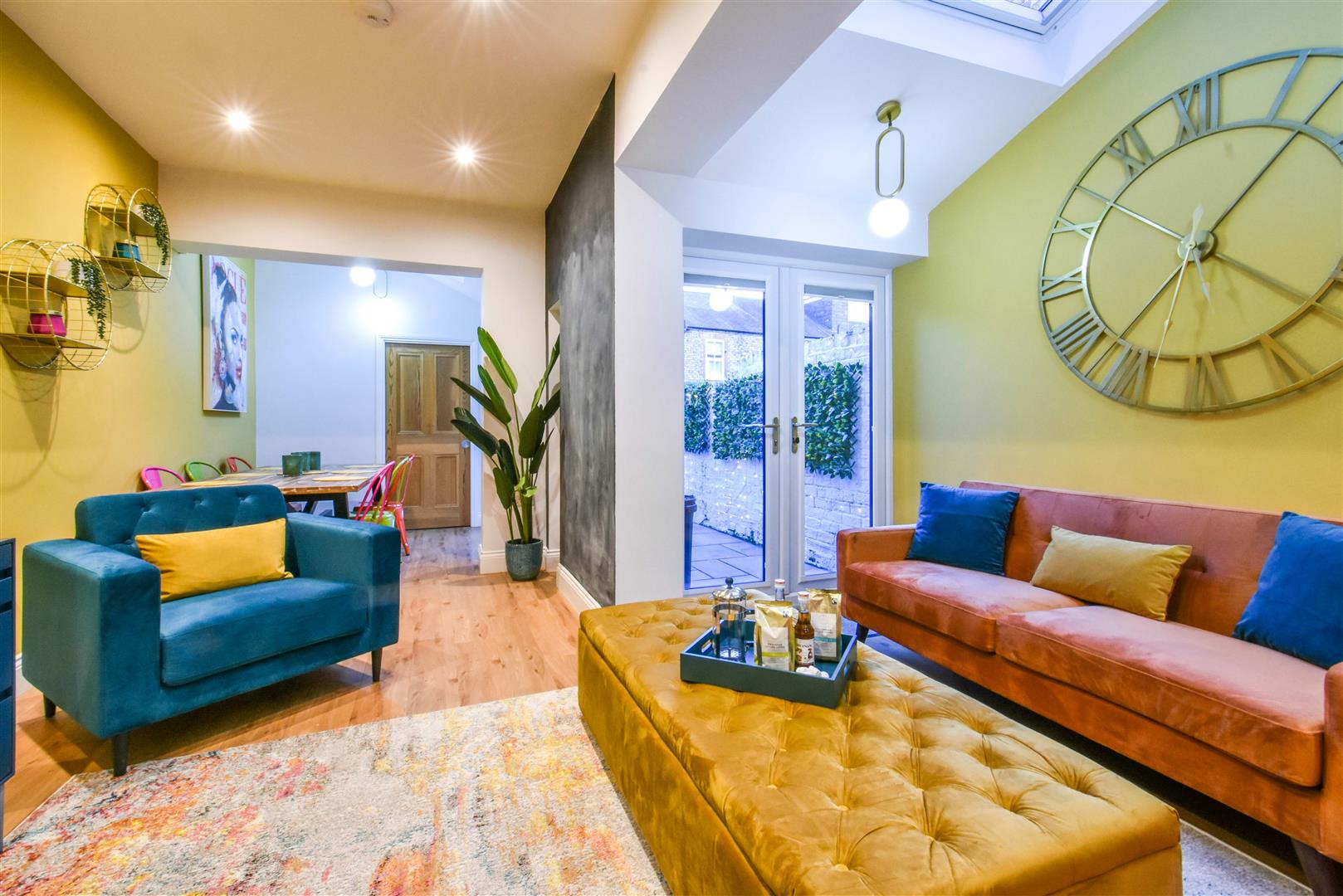 Living Kitchen - 10.67m 0.61m x 3.96m 2.13m (35' 2" x 13' 7") - Stunning large open plan family living room with sitting/dining area, uPVC double glazed patio doors to rear garden and uPVC double glazed window to side. Kitchen with full range of high quality units comprising one and a half bowl sink unit with cupboards below, base and wall units, plumbing for fridge/freezer, integrated dishwasher, solid wood work surfaces and under floor heating. Power, network, and TV points with surround sound cabling have also been added. Large under stairs cupboard providing further storage area. Room benefits from large velux ceiling windows with blinds, spot and pendent lighting together with integrated blinds on all patio doors and window.