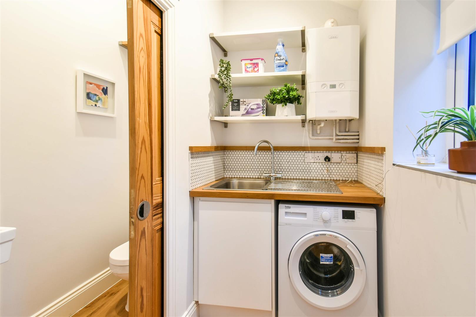 Utility Room - 1.83m 0.30m x 1.22m 0.91m (6' 1" x 4' 3") - Sliding door leads to handy room with wall mounted gas central heating boiler, sink unit, uPVC double glazed window to side, plumbing for automatic washing machine, power points. Sliding door to;