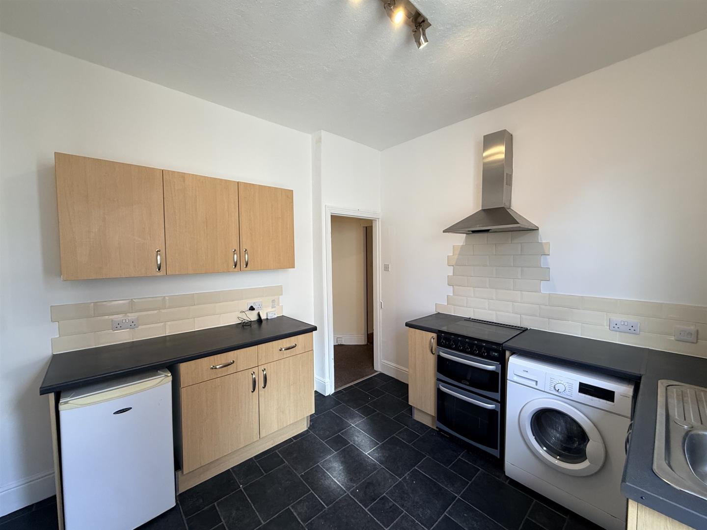 Spacious one double bedroom first floor apartment comprising of: private entrance hallway, fitted kitchen with electric...