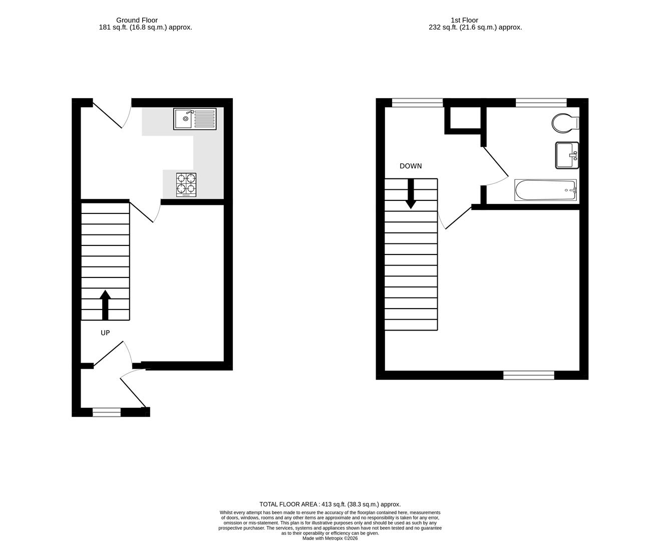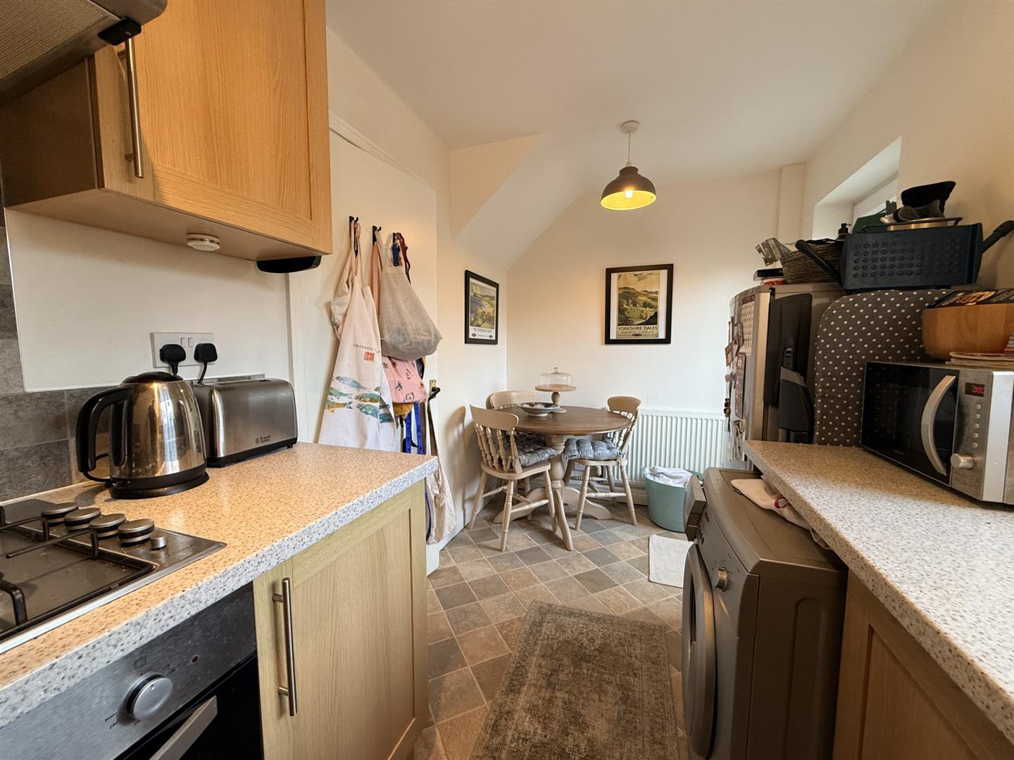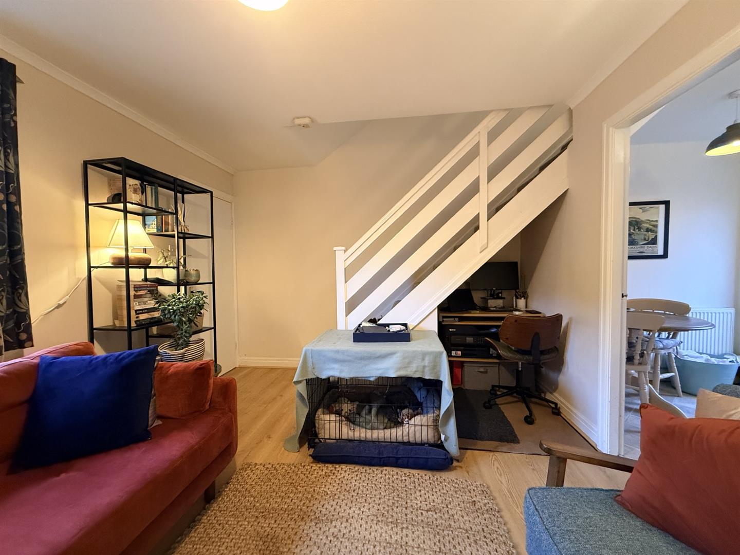 Entering through the porchway of the property, you are greeted with the lounge area with open under stair space suitable for a small desk and computer. Off the lounge is a modern kitchen, with space for a small dining room table for two.